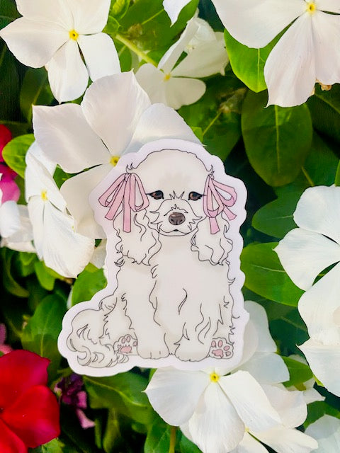 White Dog with Coquette Bows Vinyl Clear Edge Sticker-Waterproof & UV Protected